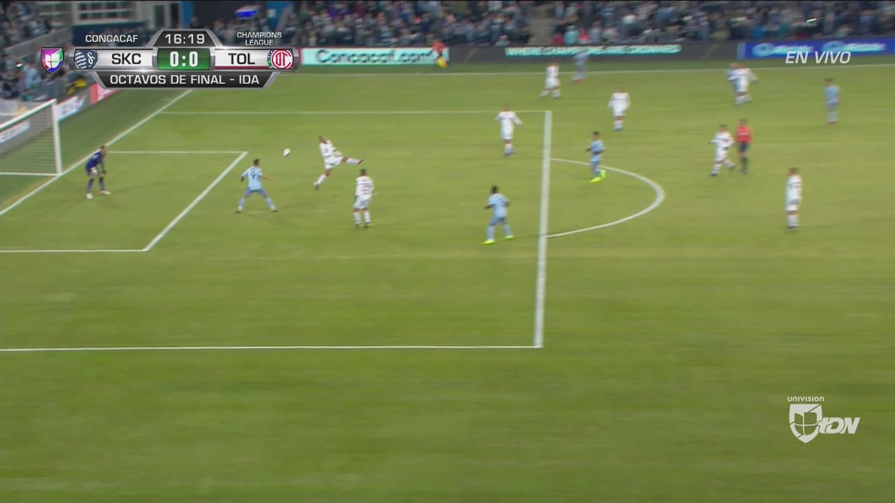 Pero a partir de ese instante, el primer episodio fue prácticamente todo de los locales, manteniendo la posesión, jugando mucho más tiempo en campo de los Diablos Rojos, y generando jugadas claras de gol. El medio campo del conjunto mexicano se perdía en los pases entre líneas, dejando a los atacantes de KC constantemente frente a la los defensores mexiquenses.