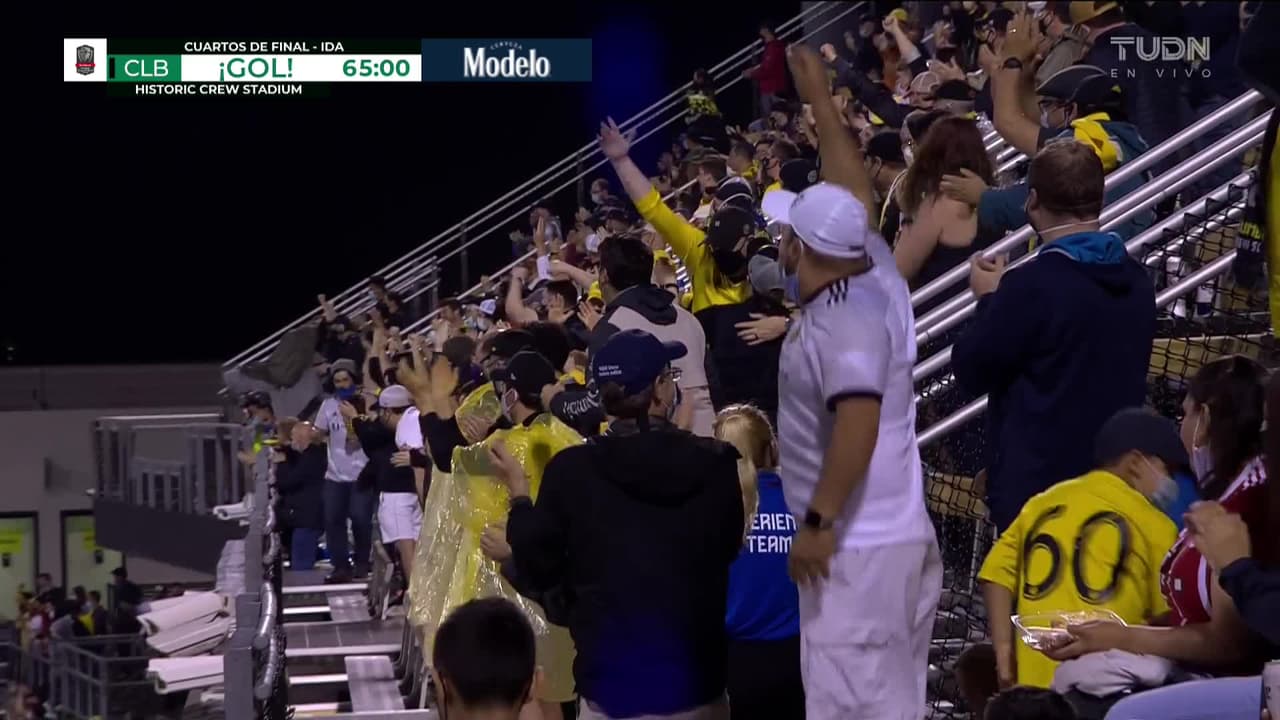 ¡Gol! Columbus Crew SC 1| Monterrey 1. Pedro Santos (Columbus Crew SC) zurdazo desde el centro del área disparo rastrero| junto al palo izquierdo.