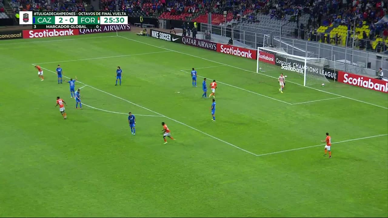 ¡Gol! Cruz Azul 2| Forge 1. David Choinière (Forge) Disparo con la derecha desde fuera del área por el lado derecho de la portería.
