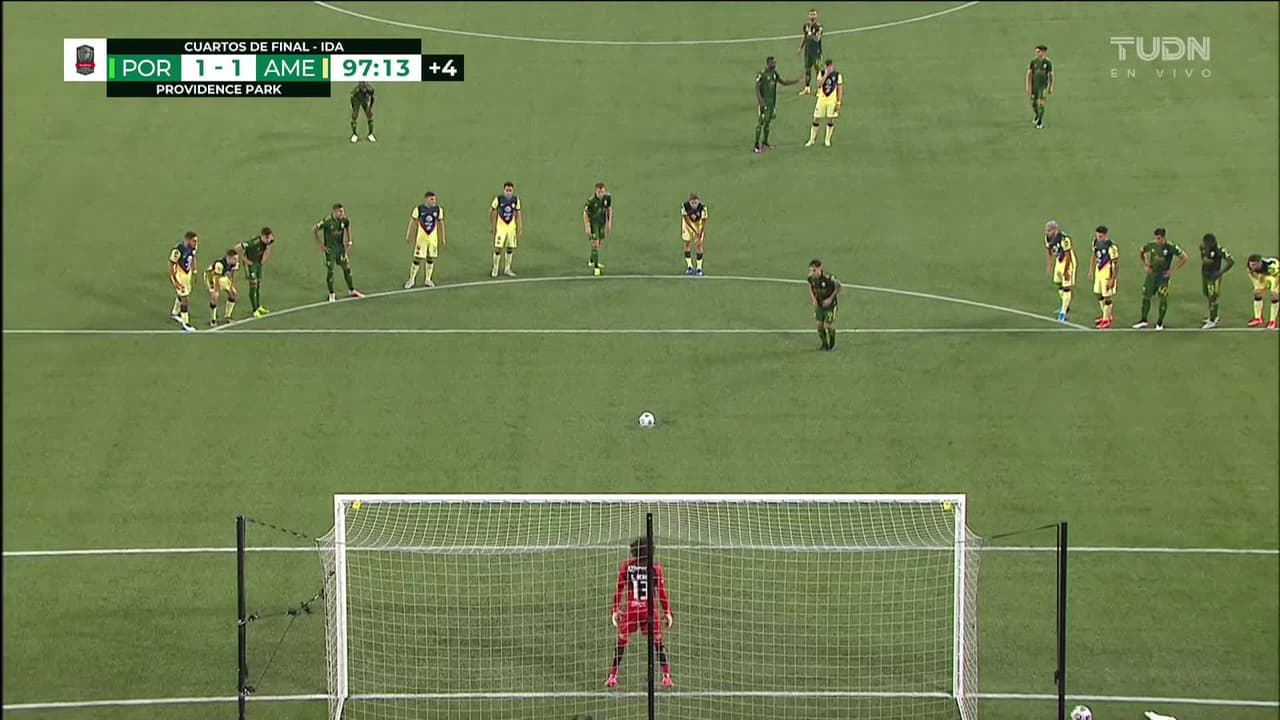 ¡Gol! Portland Timbers CF 1| América 1. Felipe Mora (Portland Timbers CF) convirtió el penalti Disparo con la derecha por el lado derecho de la portería.