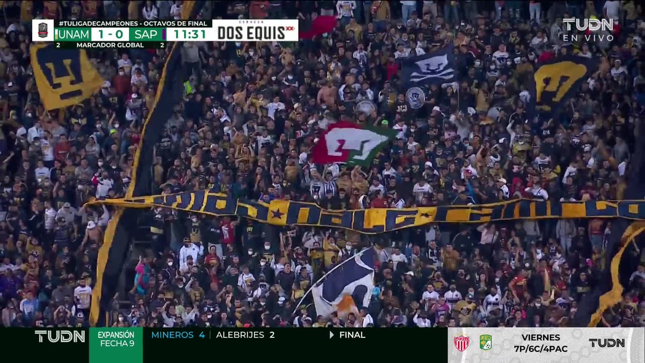 ¡Gol! Pumas UNAM 1| Saprissa 0. Arturo Ortíz (Pumas UNAM) disparo de cabeza desde el centro del área tras un saque de esquina.