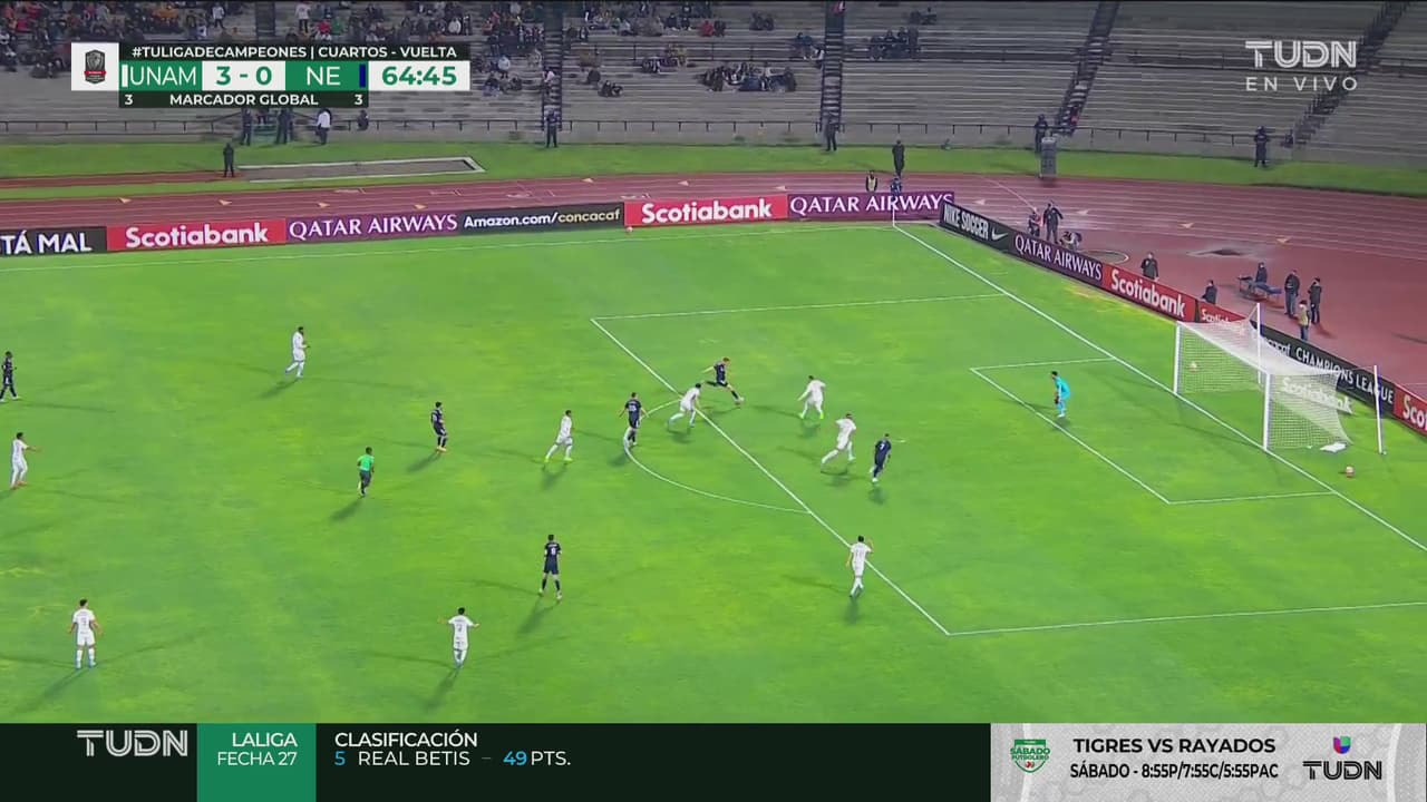 Un nuevo dardo de Mozo provocó el gol con el que Pumas empató el global 3-3. Esta vez el centro de Alan sí fue cortado por Brandon Bye, pero para la mala fortuna del Revolution el balón le cayó a Sebastián Saucedo que lo pisó, se lo acomodó y sacó un potente disparo en el área que batió a Edwards para hacer estallar a CU y a la banca universitaria al 59’.