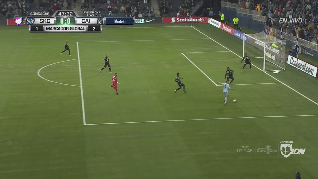 El arquero José Guerra se la jugó saliendo de su área y el delantero húngaro de Sporting KC lo esquivó, pero no pudo romper el cero frente a Independiente debido a su deficiente definición.