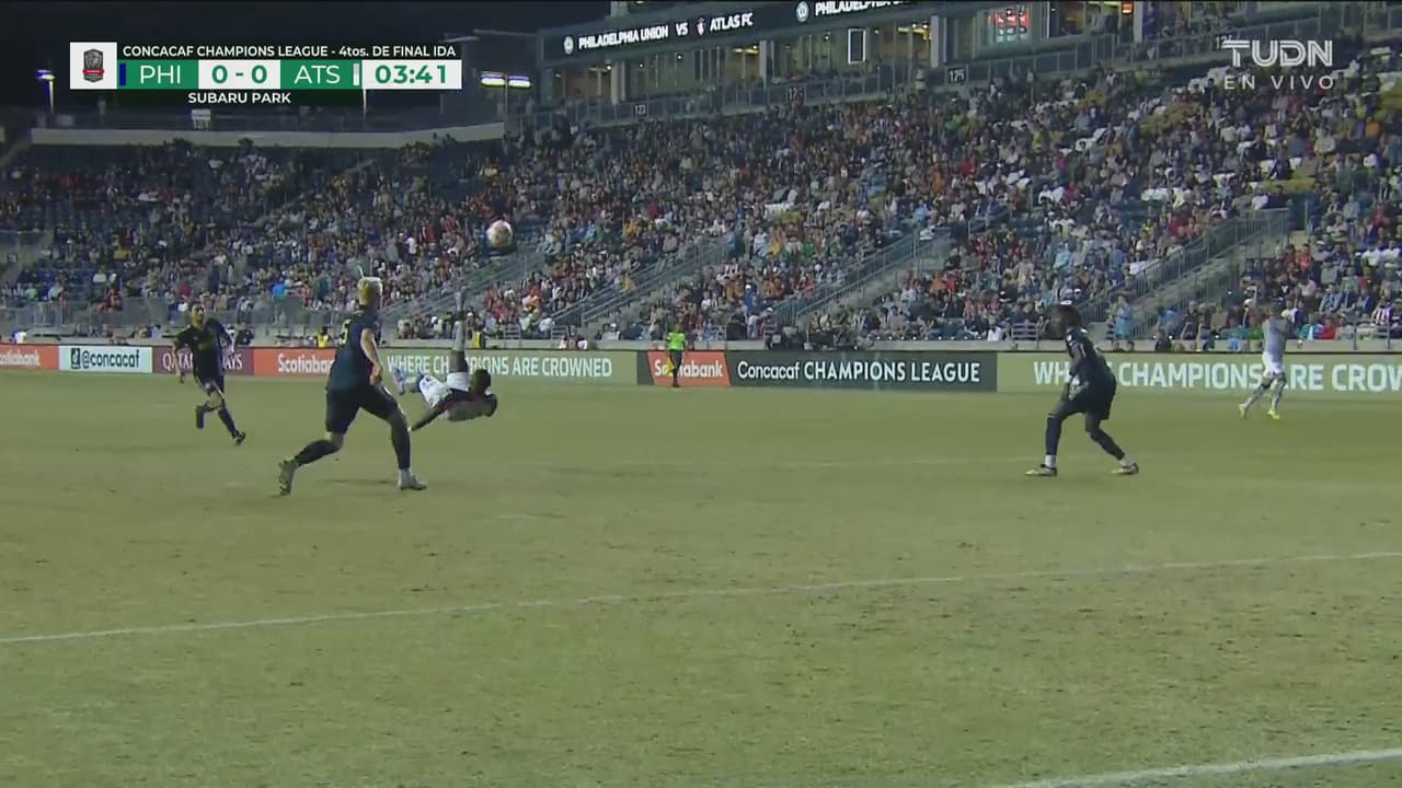 ¡La intentó de lujo! Tijera de Julián Quiñones que se va por encima