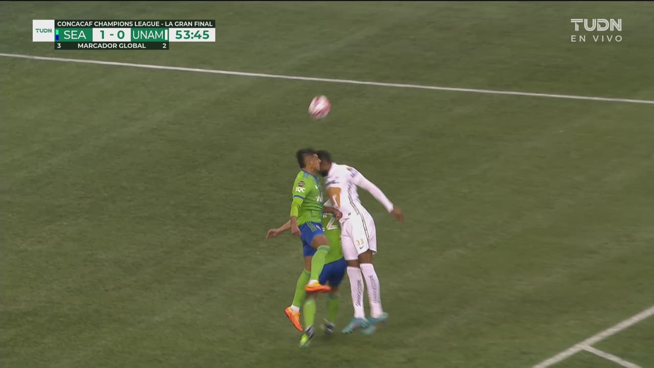 El defensa del Seattle le ganó en el salto al de Pumas, pero el impacto fue muy duro y recibieron atención.