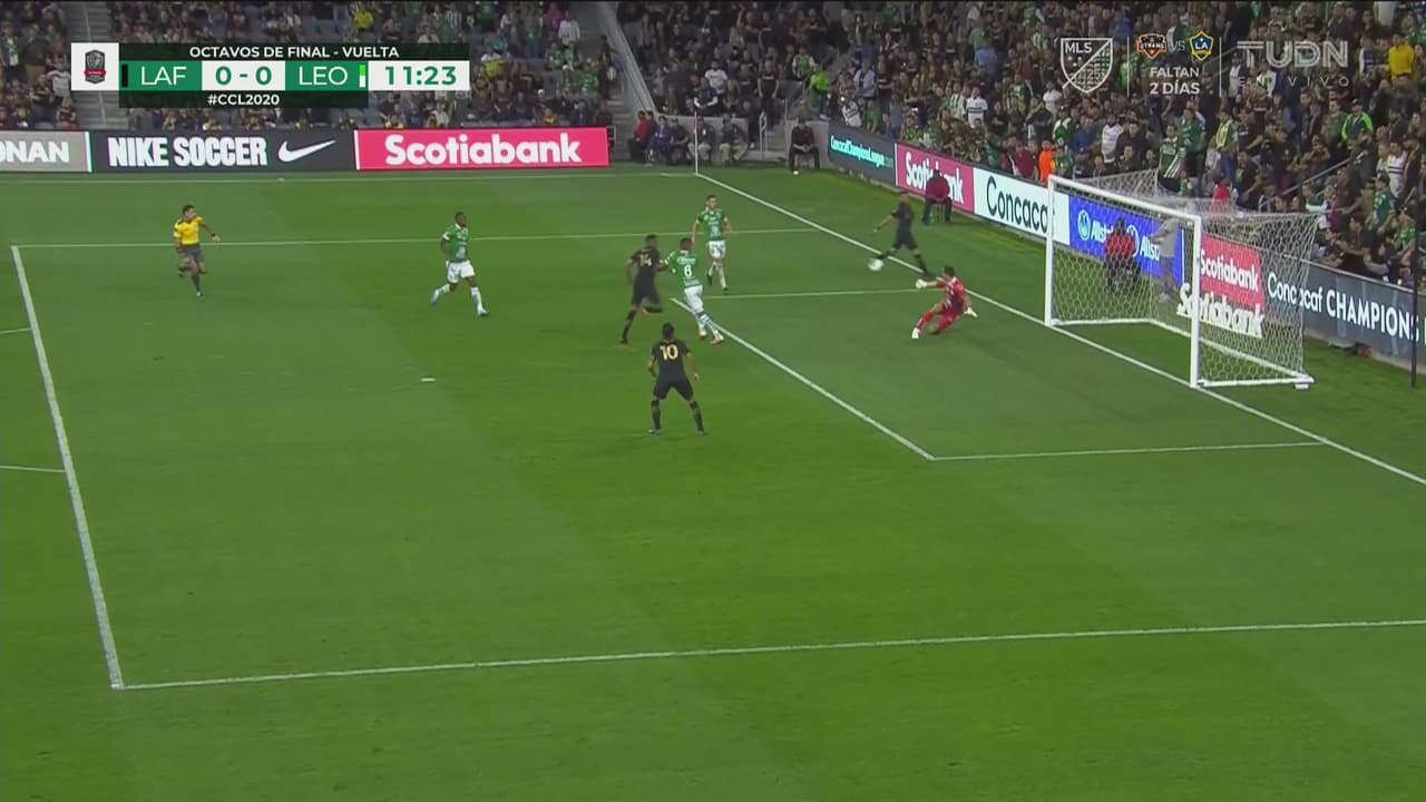 Diego Rossi asiste al delantero canadiense quien saca remate que obliga al portero del León a estirarse al máximo y mantiene el empate 0-0.