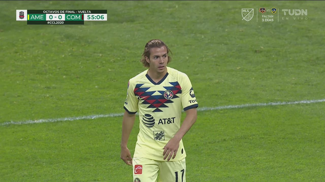 El juvenil americanista saca potente zurdazo y el portero del Comunicaciones se estira al máximo para evitar la anotación.