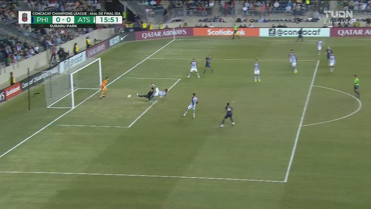 El delantero de Philadelphia Union no pudo llegar a cerrar la pinza a segundo poste al minuto 16.