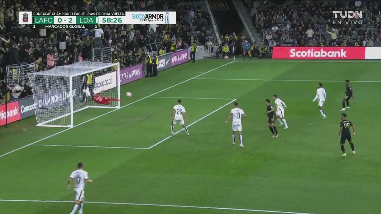 ¡Pásenle la capa! Moreira ataja a una mano el cabezazo de Carlos Vela