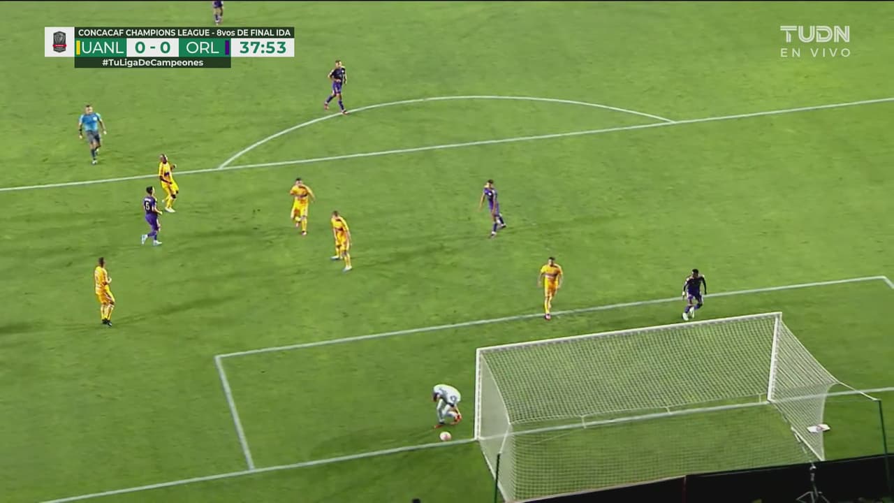 El atacante de Orlando llega por el costado derecho, entra al área y le pega con poca fuerza.
