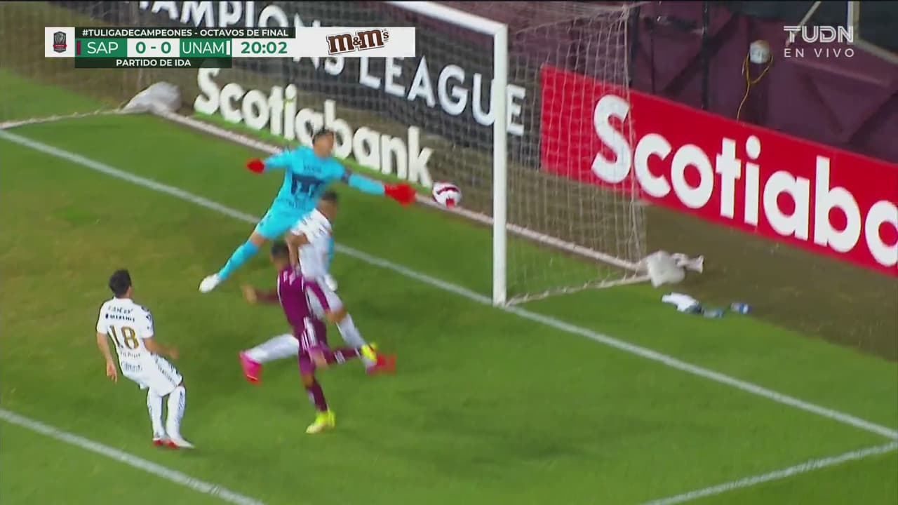 Saprissa está presionando, pero el mediocampista no pudo darle dirección de gol al remate al 17’.