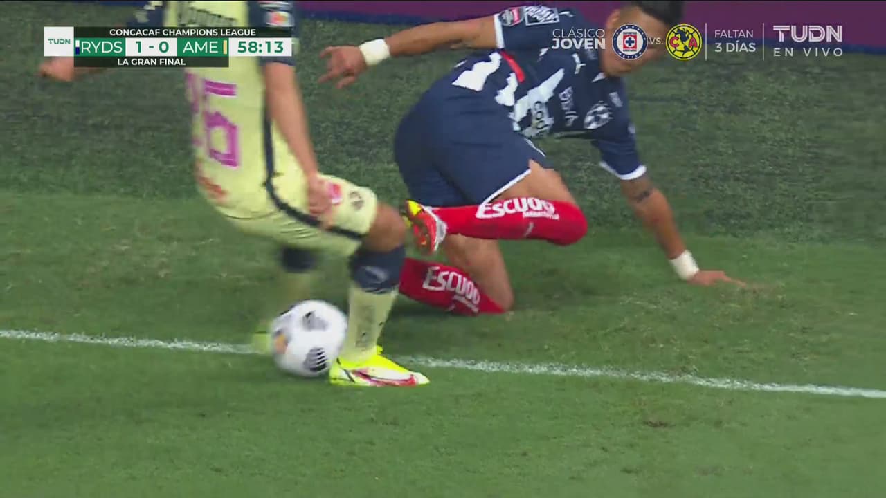 El atacante de Rayados disputaba la pelota pegada a la banda y levantándose la hace de lujo.