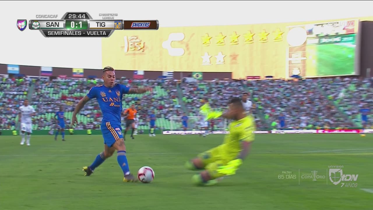Arteaga se confío demasiado en un toque hacia atrás y el chileno se avivó, y por poco le clava el tercero a 'Jona' Orozco, en otra llegada peligrosa de Tigres.