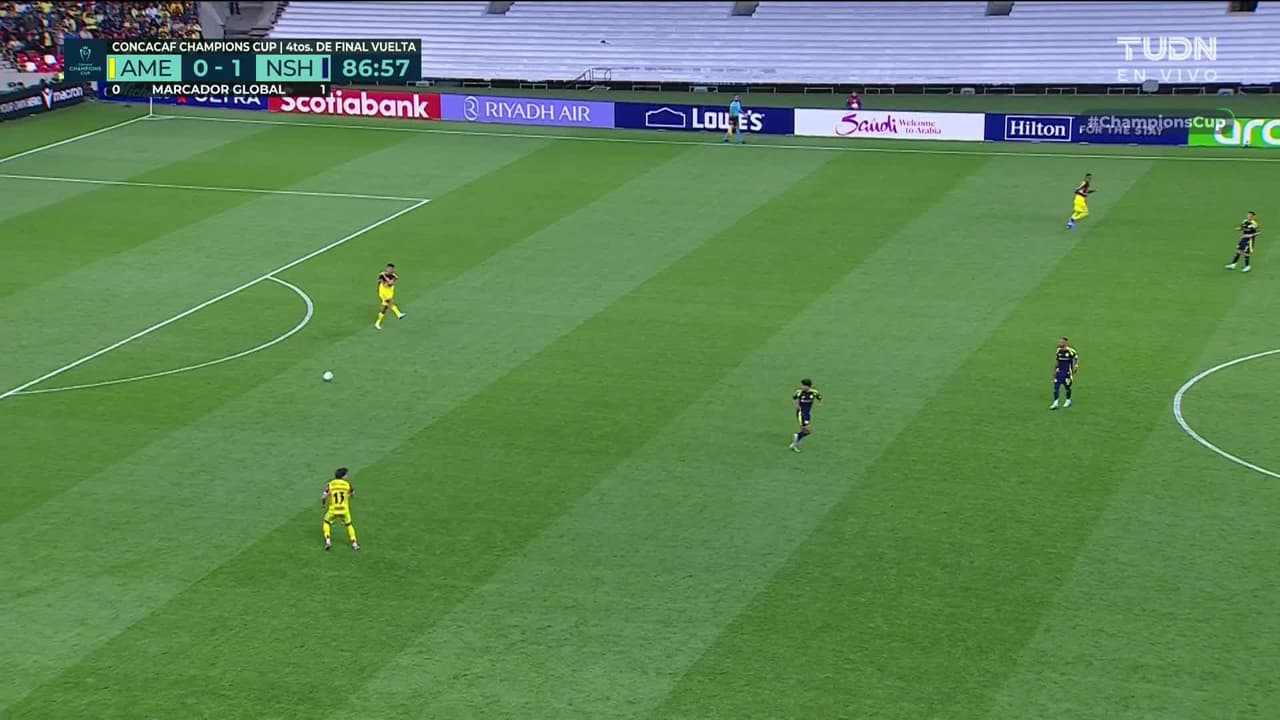 Tiro atajado por abajo a la izquierda. Miguel Vázquez (América) disparo de cabeza desde el centro del área. Asistencia de Isaías Violante con un centro al área.