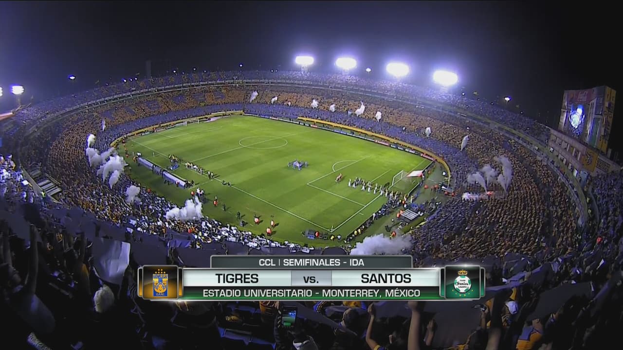Los seguidores del equipo regiomontano pintaron de amarillo y azul las tribunas del Estadio Universitario durante la presentación de la Semifinal ante Santos Laguna en la Concacaf Liga Campeones