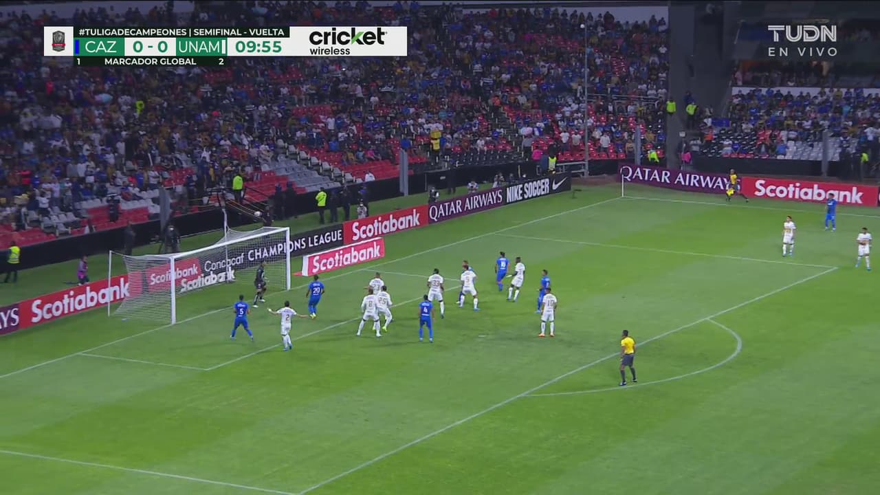 El defensa del Cruz Azul se anticipó a la marca, giró la cabeza, pero su remate pasó apenas por encima.