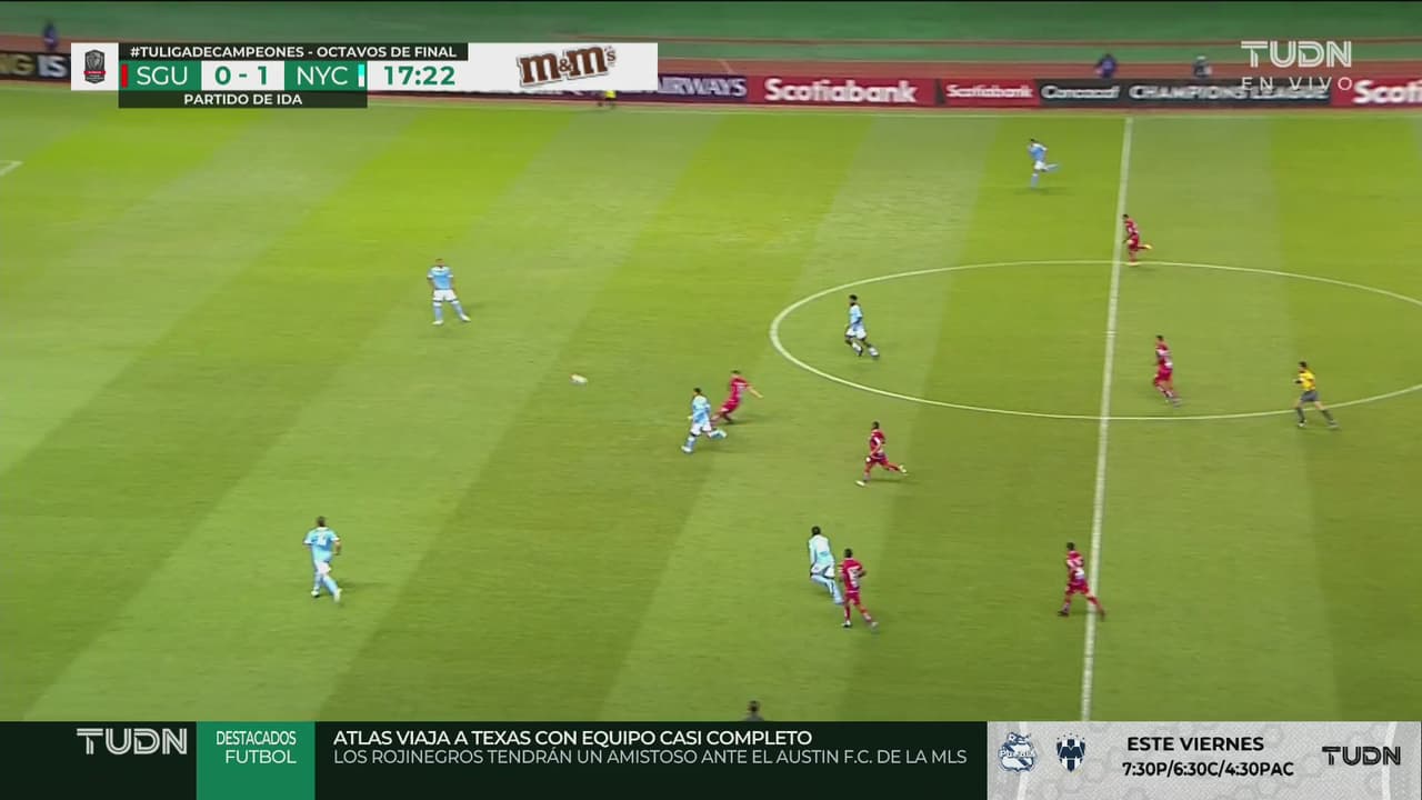 El portero del NYC FC no se encontraba en posición y por poco lo paga al minuto 17.