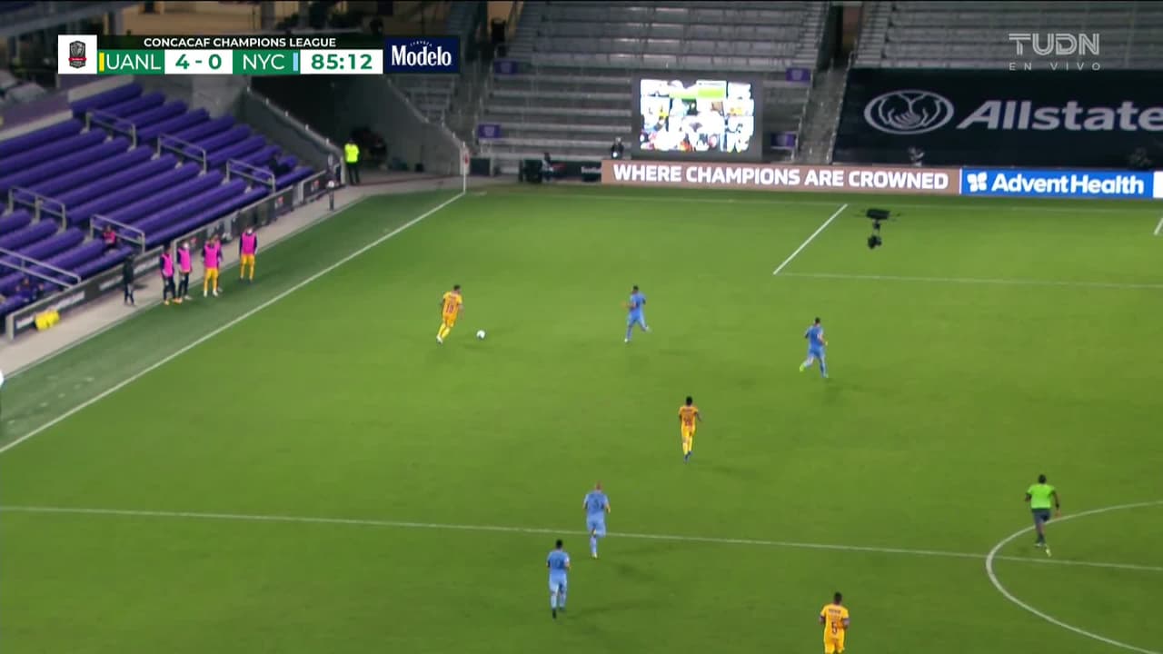 ¡Gol! Tigres 4| New York City FC 0. Javier Aquino (Tigres) Disparo con la derecha desde el centro del área disparo rastrero| junto al palo izquierdo. Asistencia de André-Pierre Gignac tras un contragolpe.