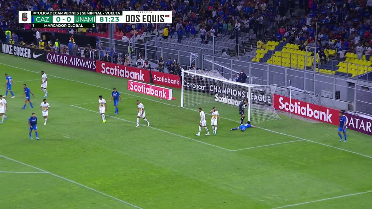 Tiro atajado al ángulo superior derecho. Adrián Aldrete (Cruz Azul) zurdazo desde fuera del área.
