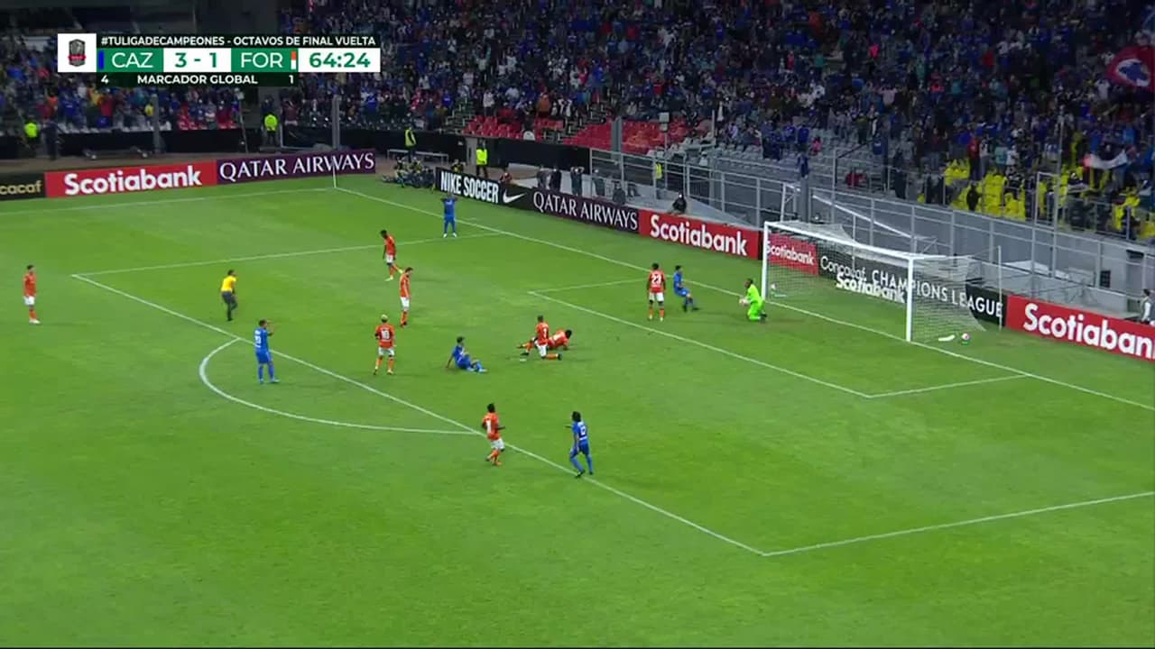 Tiro atajado. Ángel Romero (Cruz Azul) zurdazo desde el centro del área.