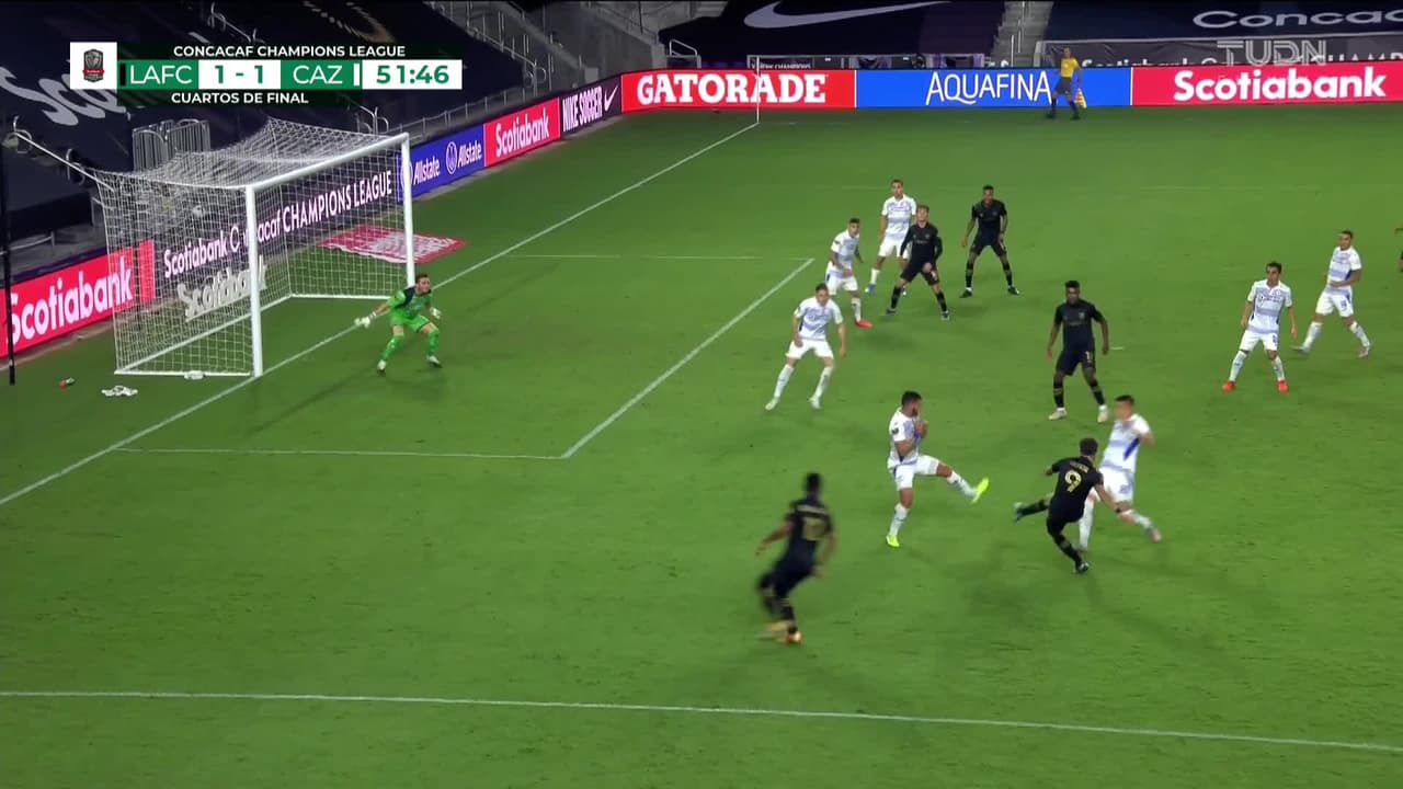 Tiro atajado. Diego Rossi (Los Angeles Football Club) Disparo con la derecha desde el lado izquierdo dentro del área.