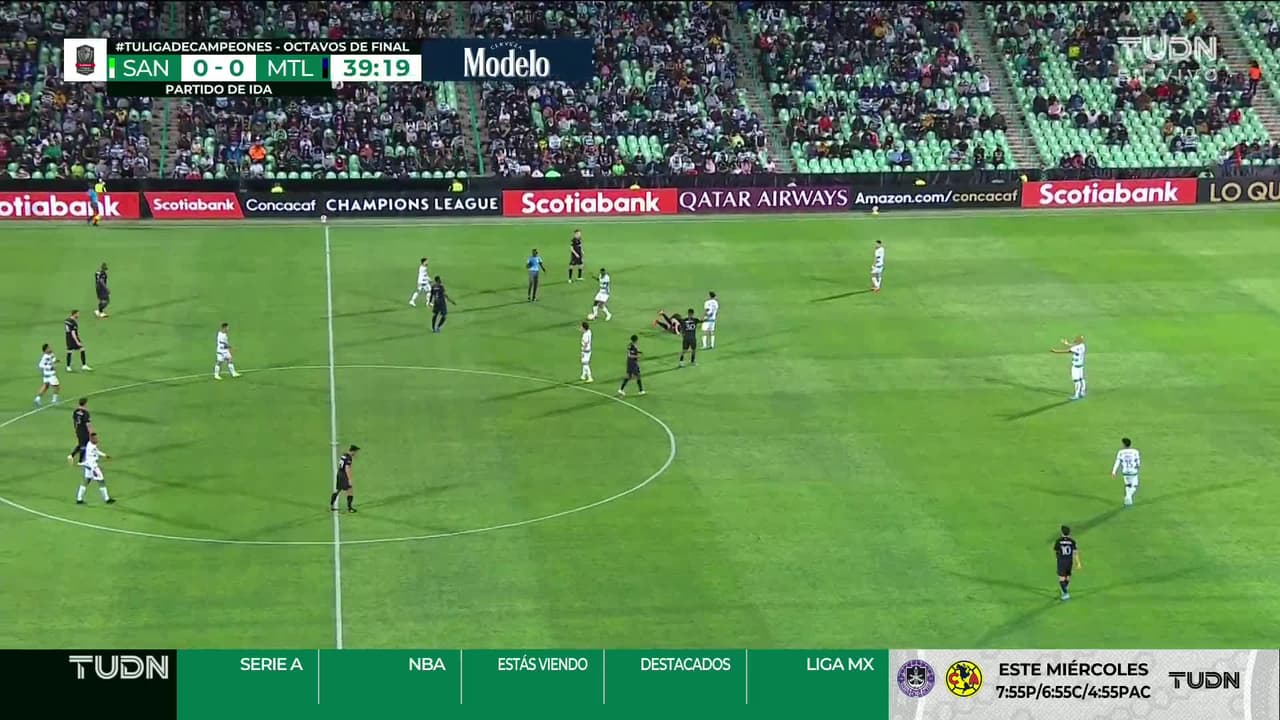 Tiro atajado junto al lado derecho de la portería. Dória (Santos Laguna) zurdazo desde fuera del área. Asistencia de Alan Cervantes.
