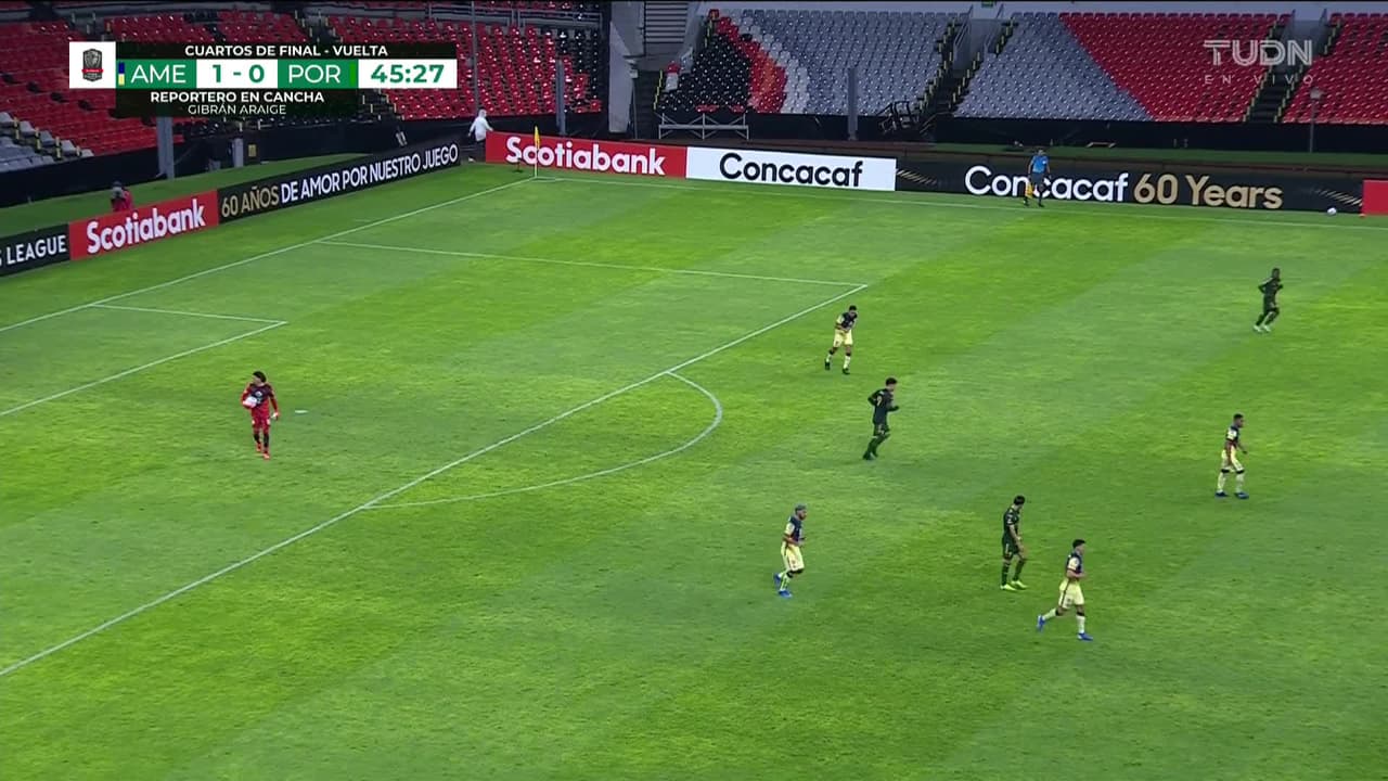 Tiro atajado raso al centro del arco. Felipe Mora (Portland Timbers CF) Disparo con la derecha desde el centro del área.