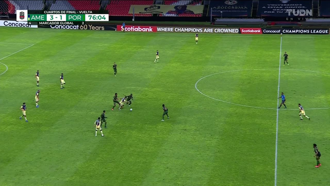 Tiro atajado. Felipe Mora (Portland Timbers CF) Disparo con la derecha a quemarropa desde el lado izquierdo.