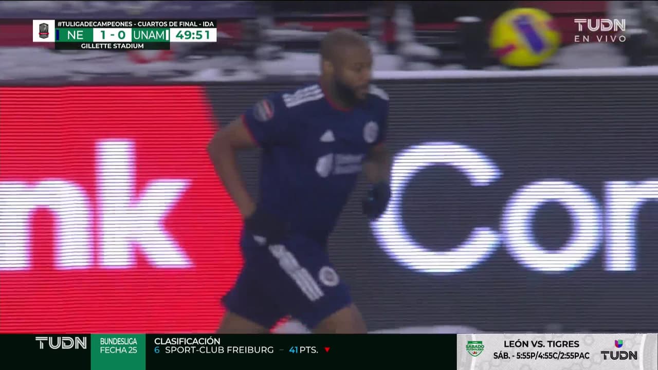 Tiro atajado al ángulo superior derecho. Gustavo Bou (New England Revolution) Disparo con la derecha desde fuera del área.