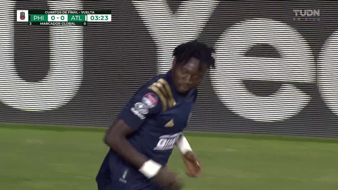 Tiro atajado junto al lado derecho de la portería. Jack Elliott (Philadelphia Union) disparo de cabeza desde el centro del área. Asistencia de Jamiro Monteiro con un centro al área.