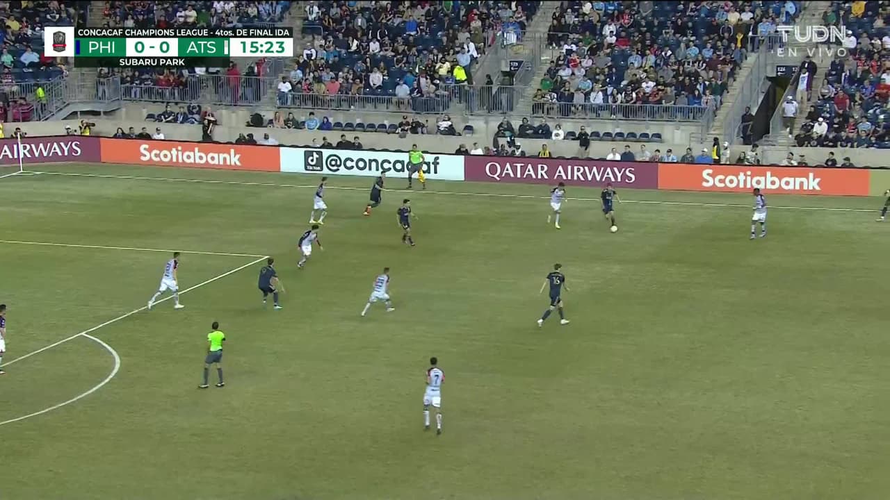 Tiro atajado al ángulo superior derecho. Jakob Glesnes (Philadelphia Union) disparo de cabeza desde el lado izquierdo dentro del área. Asistencia de Alejandro Bedoya pase largo.