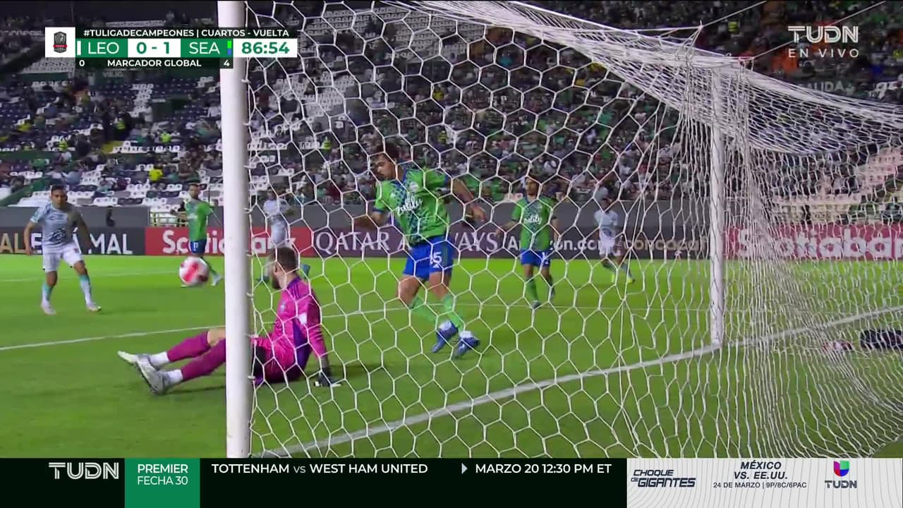 Tiro atajado raso al centro del arco. Jean Meneses (León) Disparo con la derecha desde el centro del área. Asistencia de Santiago Ormeño con un pase de cabeza.