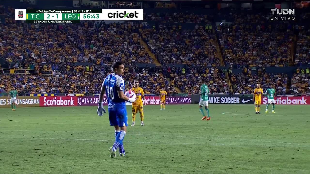 Tiro atajado. Jesús Angulo (Tigres) Disparo con la derecha desde fuera del área.