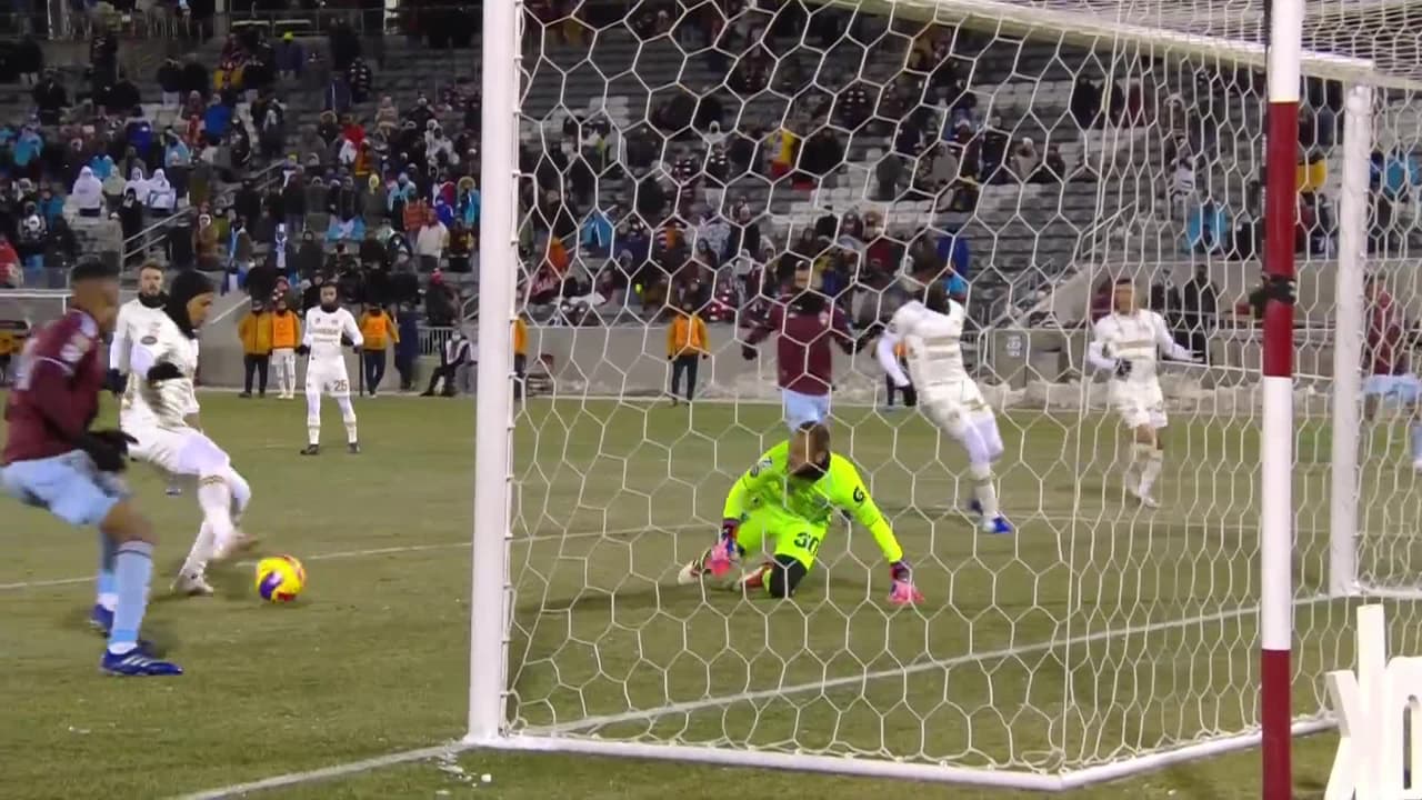 Tiro atajado. Lucas Esteves (Colorado Rapids) zurdazo desde el lado izquierdo dentro del área.