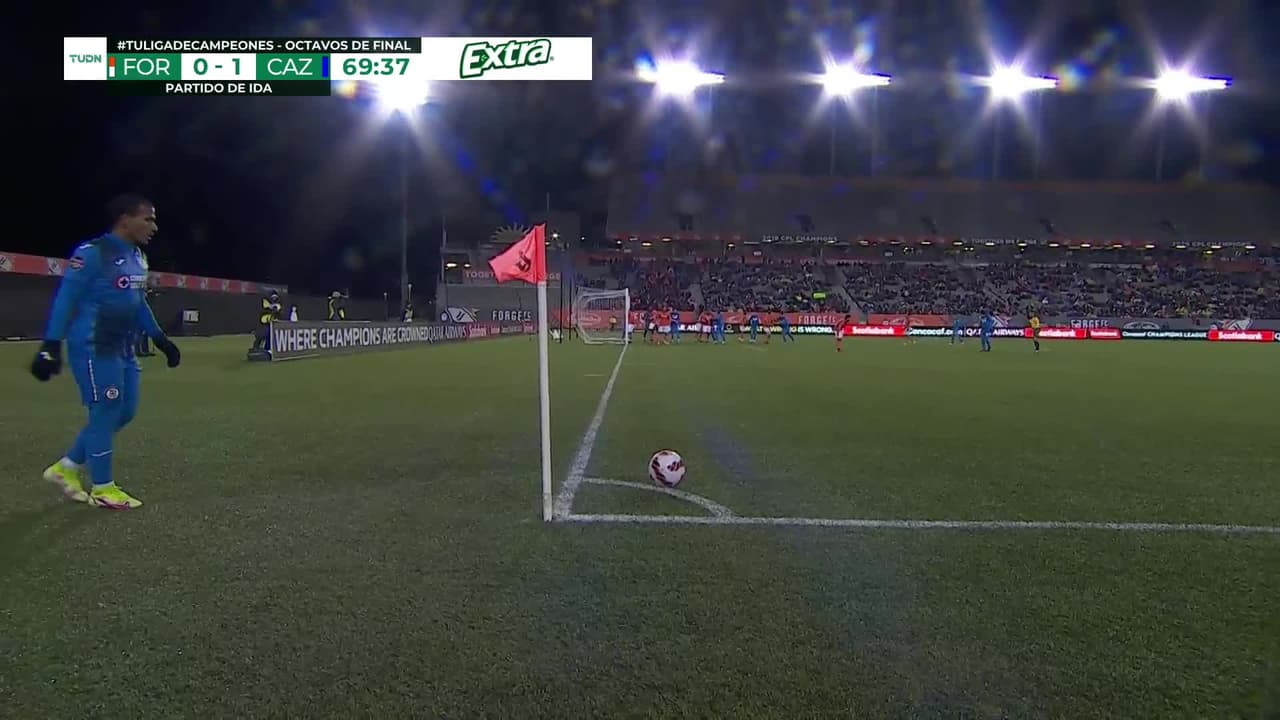 Tiro atajado junto al lado derecho de la portería. Luis Mendoza (Cruz Azul) Disparo con la derecha desde fuera del área. Asistencia de Luis Abram después de un pase en profundidad.