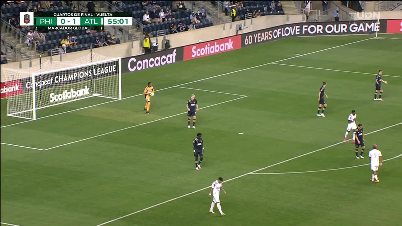 Tiro atajado raso al centro del arco. Marcelino Moreno (Atlanta United FC) Disparo con la derecha desde el centro del área. Asistencia de Erik López con un centro al área.