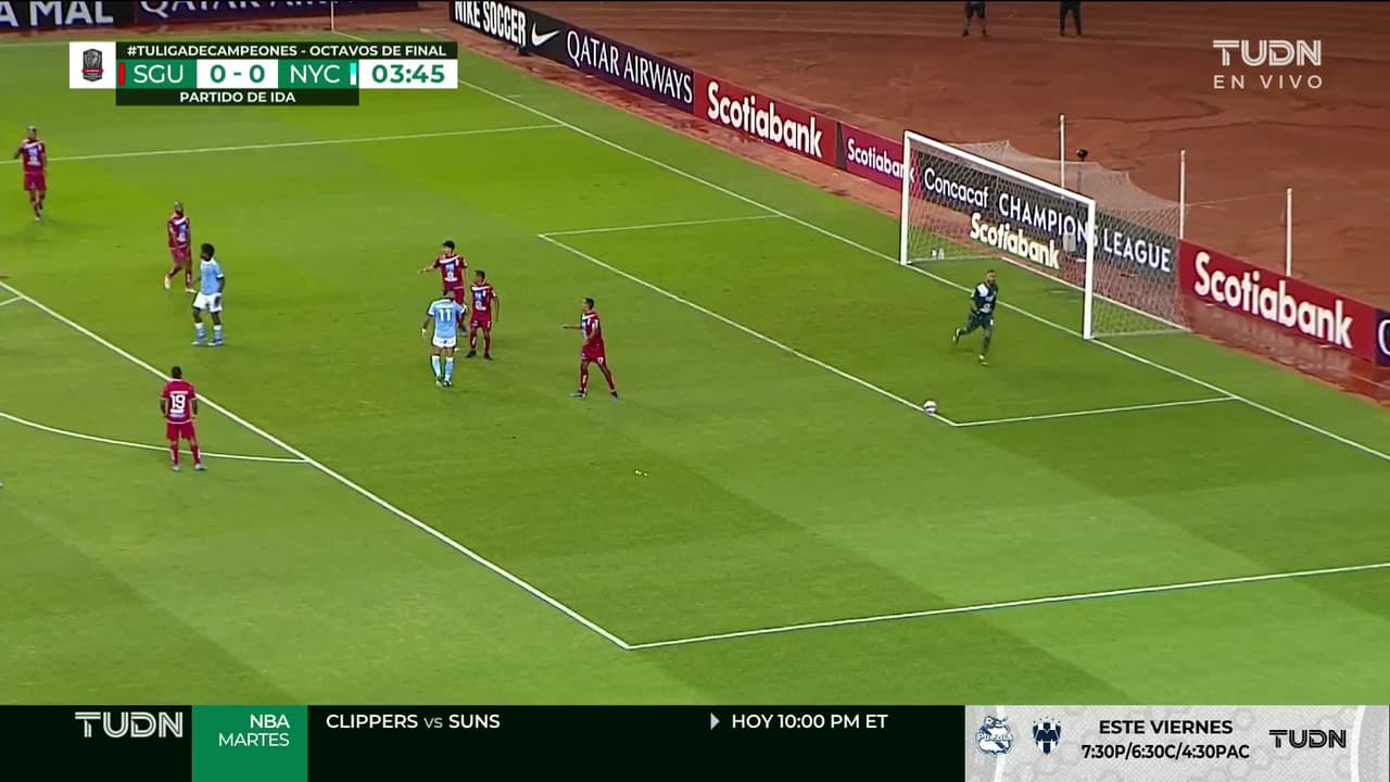 Tiro atajado raso al centro del arco. Maximiliano Moralez (New York City FC) zurdazo desde el centro del área.