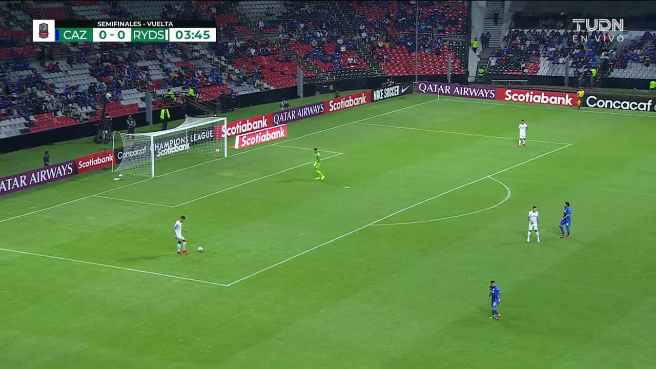 Tiro atajado. Orbelín Pineda (Cruz Azul) Disparo con la derecha desde fuera del área.