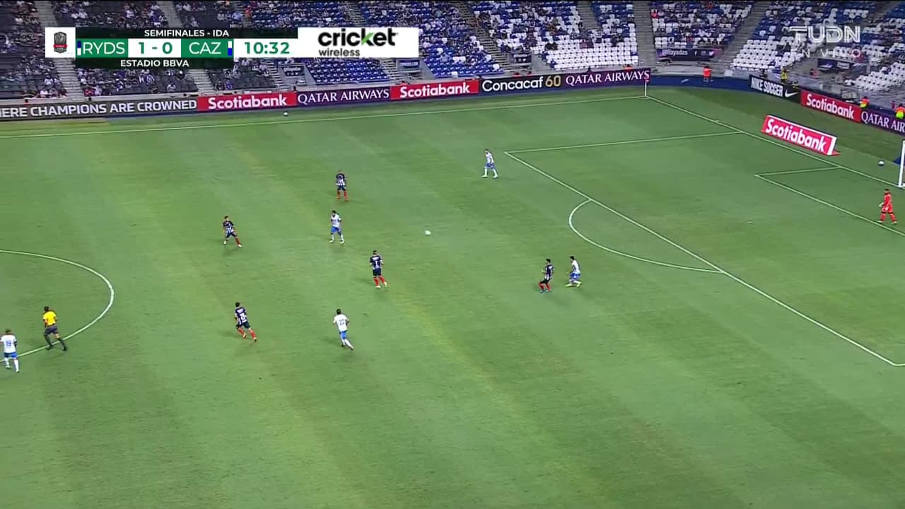 Tiro atajado. Rogelio Funes Mori (Monterrey) Disparo con la derecha desde el centro del área.