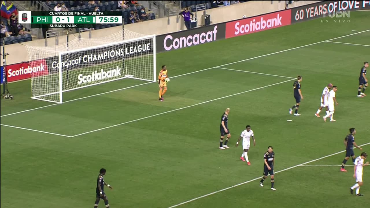 Tiro atajado raso al centro del arco. Santiago Sosa (Atlanta United FC) zurdazo desde fuera del área.