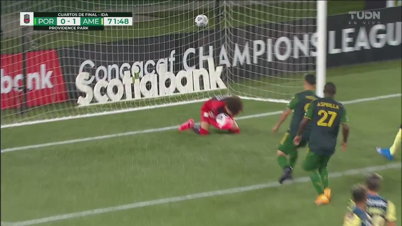 El de Timbers trata con tiro libre, pero sale directo al portero del América, al minuto 72.