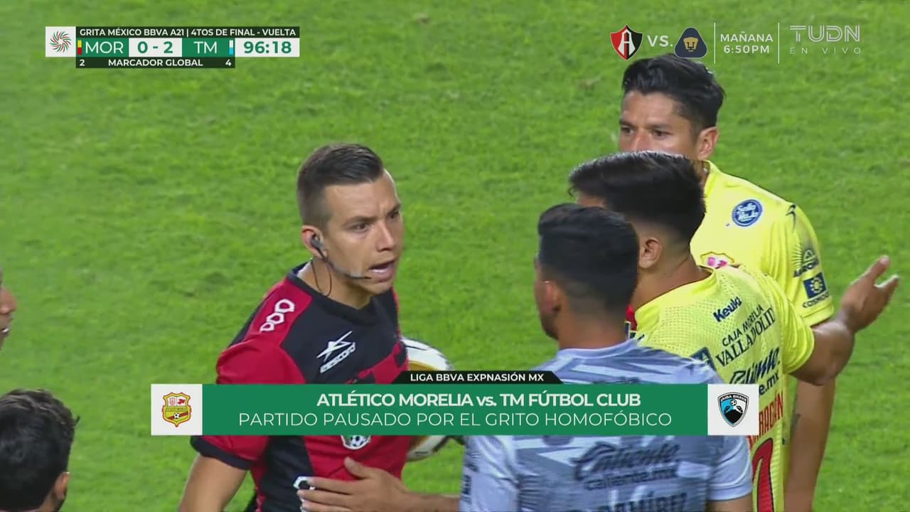 Al minuto 90 la afición en el estadio Morelos estaba frustrada por lo que ocurría en el encuentro y en un despeje del arquero apareció el grito prohibido, el silbante detuvo las acciones siguiendo el protocolo pero en la reanudación ocurrió nuevamente por lo que detuvo el encuentro, mandó a los jugadores a los vestidores y al ver que los ánimos seguían encendidos decidió finalizar el juego.