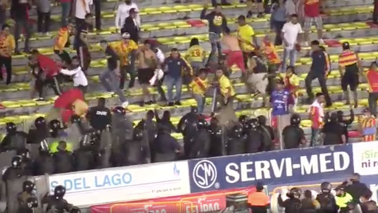 Sin embargo, en lugar de atender las indicaciones, comenzaron a arrojar objetos a la cancha y, posteriormente, un grupo de varios fanáticos intercambió golpes en las gradas con el grupo de policías ubicado detrás de una de las porterías.