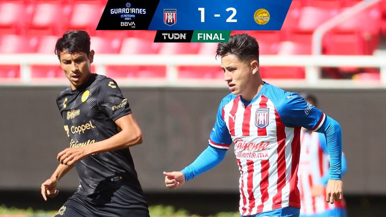En la segunda mitad se dio el contragolpe de dorados y Adrián Marín le pegó apenas pasando la línea de medio campo y agarró adelantado al portero Raúl Rangel y así logró su doblete con un golazo en el minuto 62.