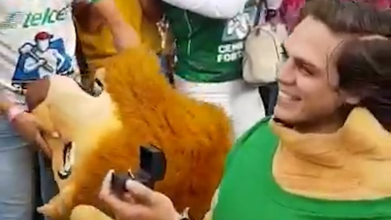 Un joven seguidor del León se disfrazó de botarga para sorprender a su novia y pedirle matrimonio a las afueras del estadio antes de entrar a la Final.