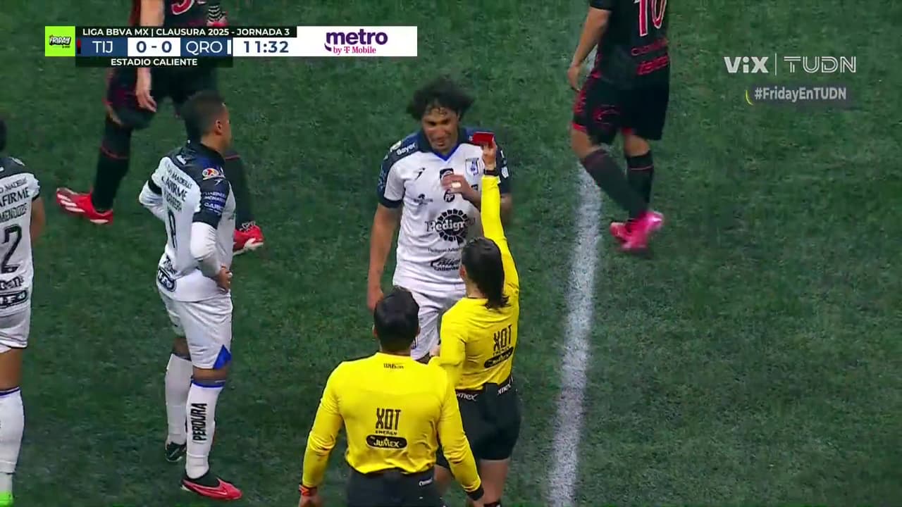 A los 11 minutos del partido el conjunto queretano se queda con un hombre menos tras la expulsión del paraguayo con ayuda del VAR.