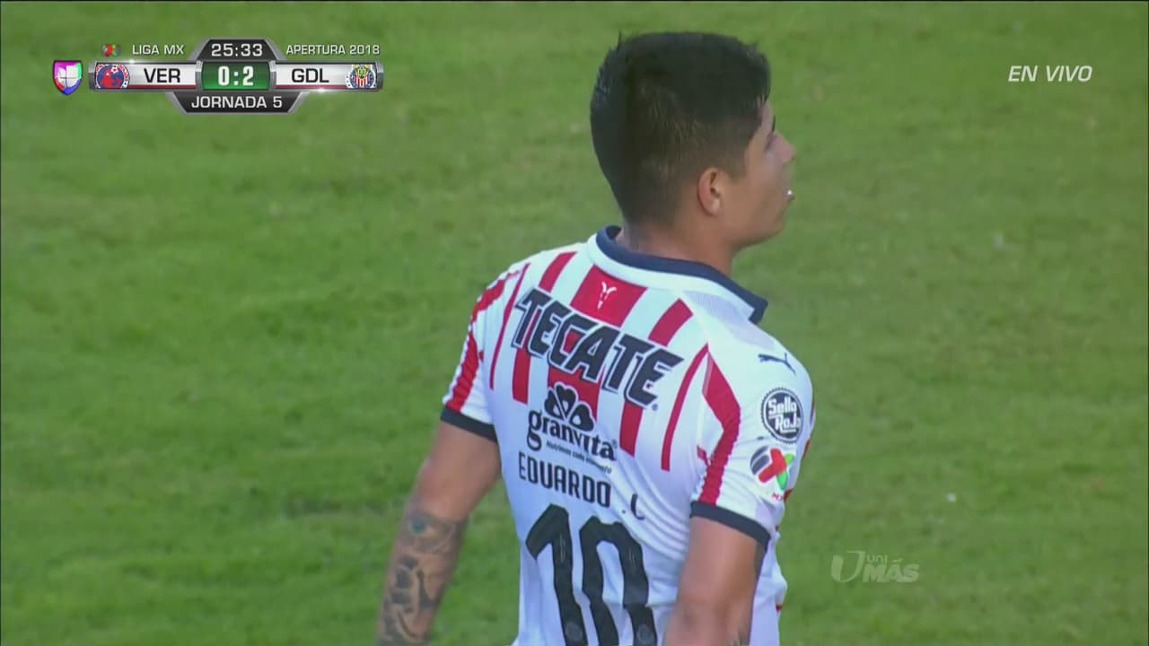 Qué definición. López recibió solo y definió de ‘vaselina’ ante la salida de Pedro Gallese. Chivas gana con autoridad en el puerto jarocho.
