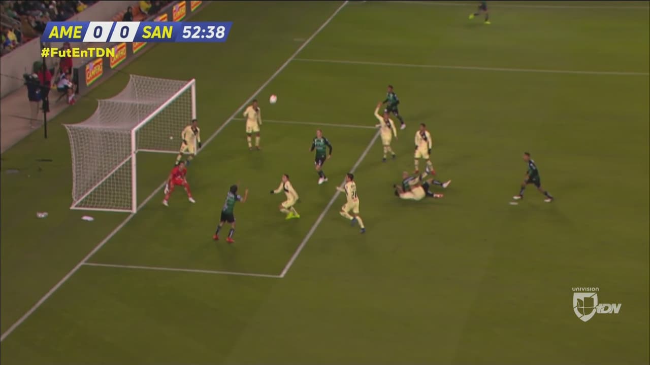 Dorio cabeceó dentro del área para habilitar al lateral que envió el balón a portería pero Jiménez intervino para salvar su red.