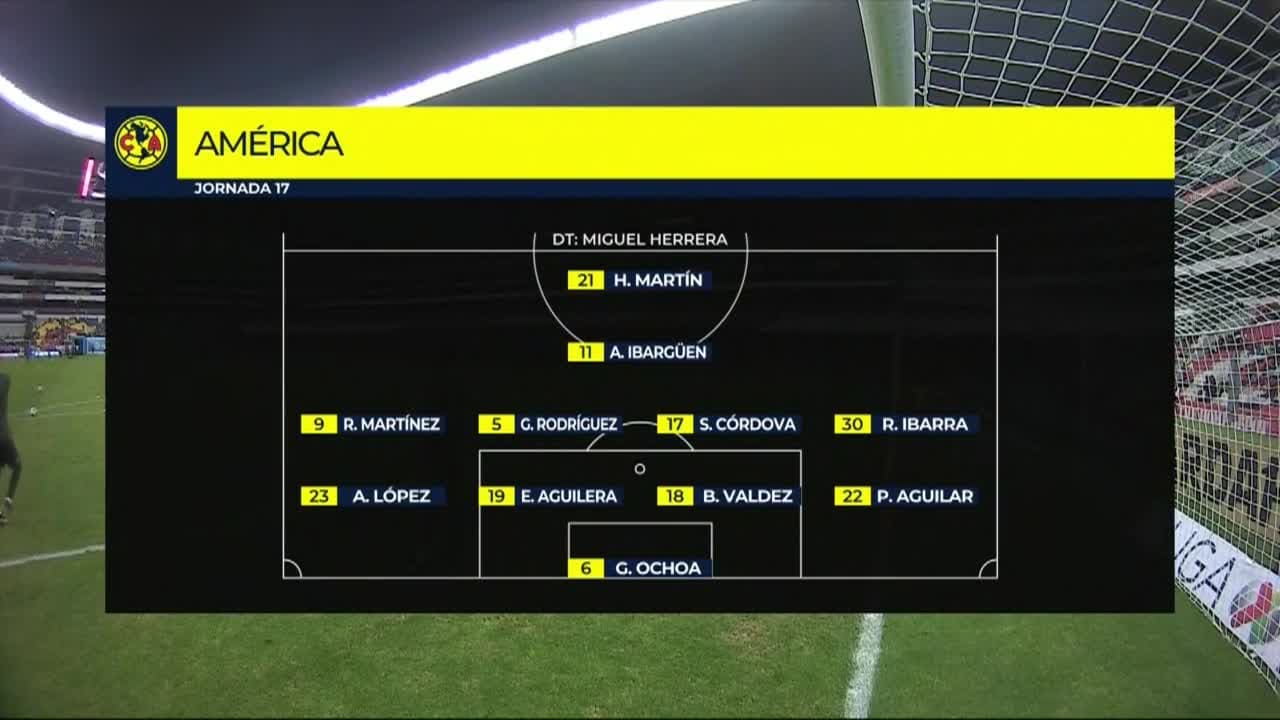 Las Águilas repiten alineación por primera vez en la temporada, además de que Giovani Dos Santos y Jorge Sánchez regresan al banquillo luego de superar sus lesiones.