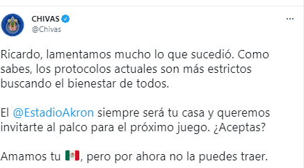 Después de todo lo sucedido, Chivas respondió en redes sociales al aficionado afectado y lo invitó al palco en el Estadio Akron.